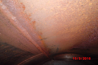 Podzemní ocelová jednoplášťová nádrž před opravou